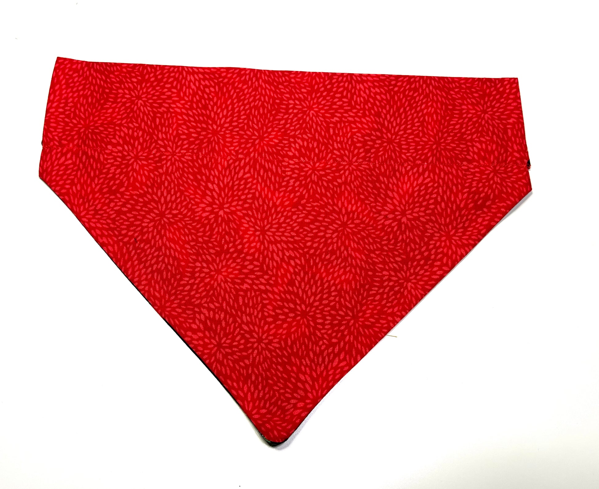 These bandanas have reversible patterns to be able to wear either way when slipped on to your dogs collar. Just pick which side and slip collar through the opening between the front and back of the bandana, then clip the collar around your pets neck. These bandanas do require a collar and cannot be tied around your dog's neck.