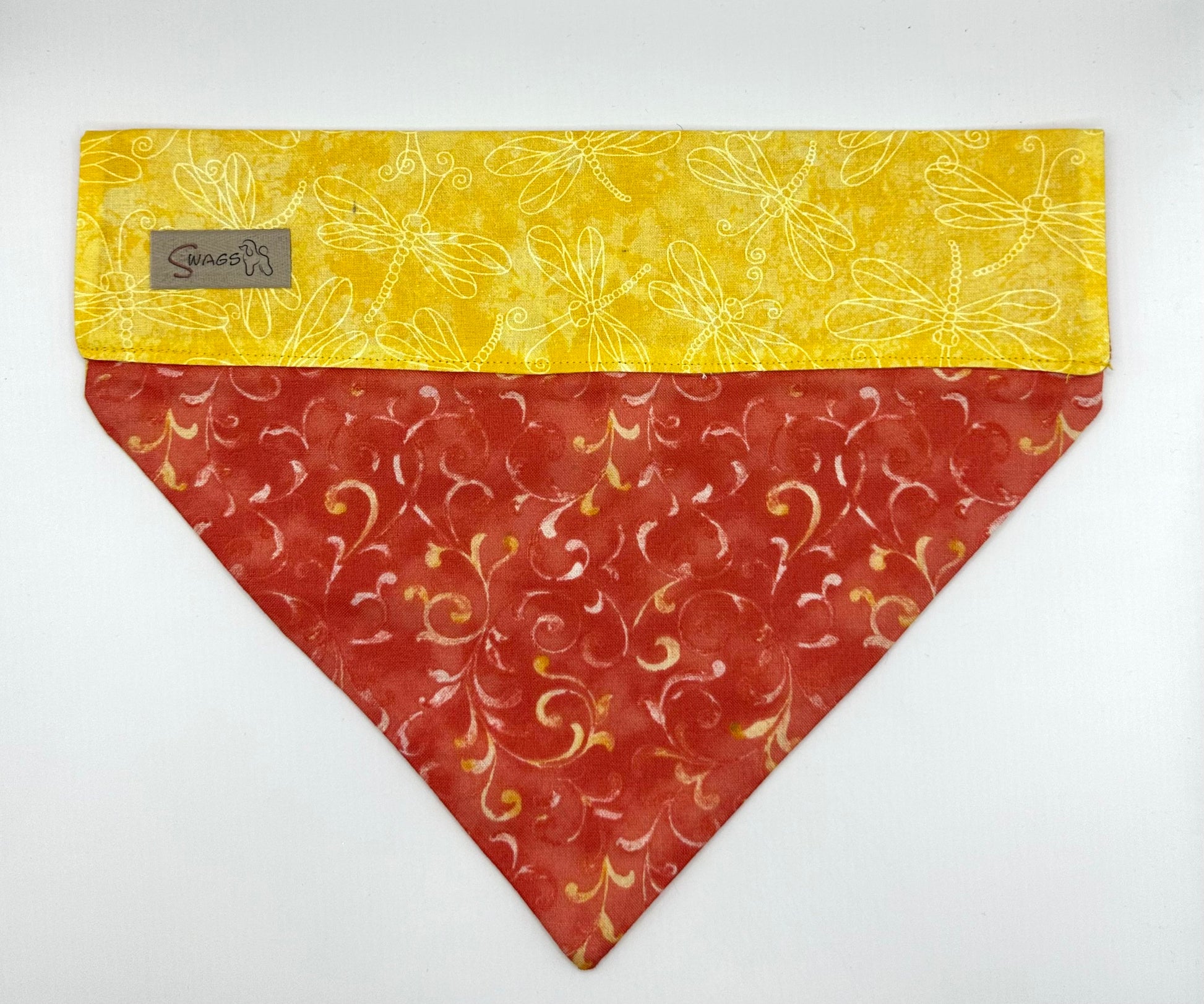 Swirls on Orange with Yellow Dragonflies
